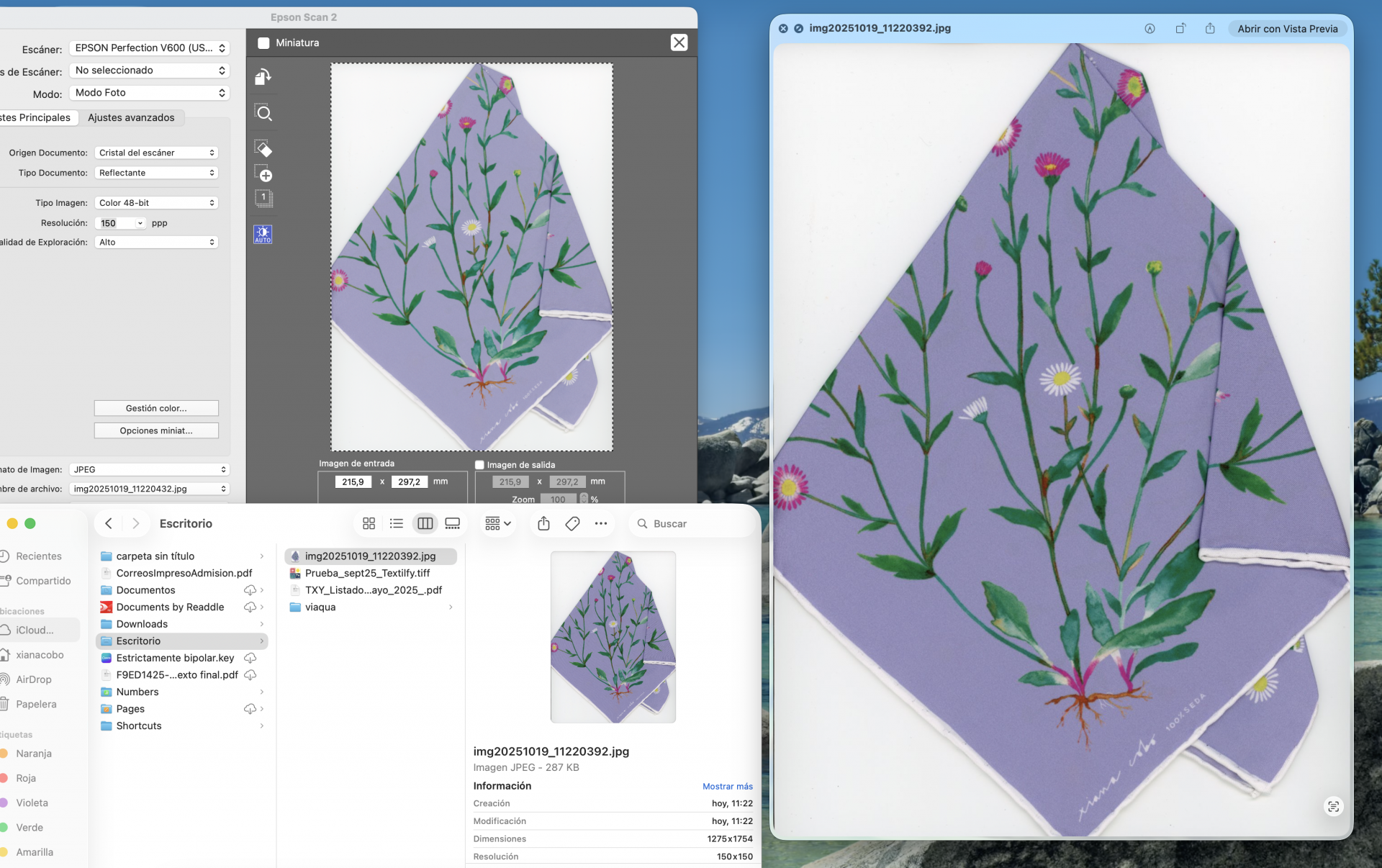 Todos nuestros pañuelos están producidos en España y orillados a mano en Galicia. El orillo de rulo es un tipo de costura en desuso y de este modo evitamos su desaparición.